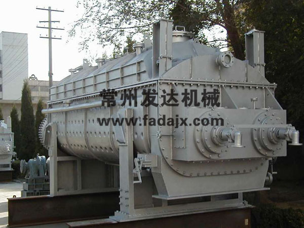 热风式即通过热载体(如热空气)与被干燥的物料相互接触并进行干燥,在传导式中热载体并不与被干燥的物料直接接触,而是热表面与物料相互接触。空心轴上密集排列着楔型中空桨叶,热介质经空心轴流经桨叶。单位有效容积内传热面积很大,热介质温度从-40~320°C,可以是水蒸气,也可以是液体型:如热水、导热油等。间接传到加热、没有携带空气带走热量,热量均用来加热物料,热量损失仅为通过器体保温层向环境的散热。楔形桨叶传热面具有自清洁功能,物料颗粒与楔形面的相对运动产生洗刷作用,能够洗刷掉楔形面上的附着物,试运转中一直保持着清洁的传热面。